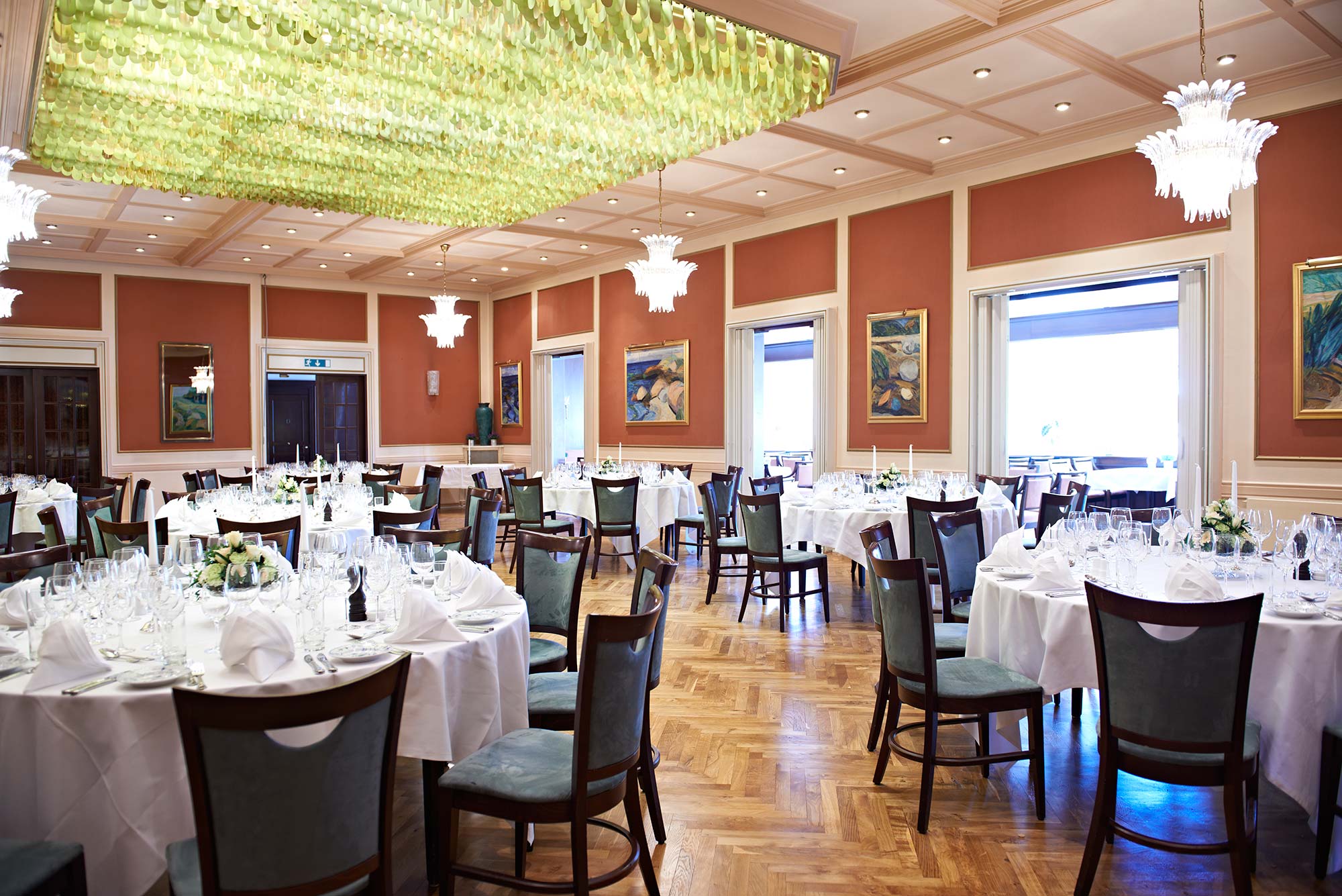 Salen er vores største lokale med plads til 40–120 gæster til spisning. Plads til 150 ved møder. Ved runde borde kan der sidde 70 spisende gæster.
